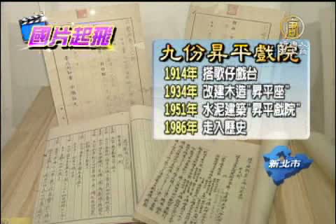 九份昇平戲院是日據時代,全台灣最早也最大的電影院,1914年,當地居民在九份基山街搭戲台,演出歌仔戲,1934年,地方人士將戲台改建為木造戲院昇平座,到了1951年,才有三層樓水泥建築的昇平戲院,鼎盛時期,電影院場場爆滿,有時連走道都站滿了人,後來隨著礦業式微,昇平戲院在1986年走入歷史。