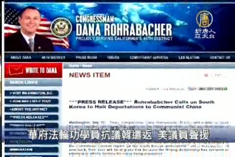 多位逃離中國大陸的法輪功學員在集會上講述了他們遭受酷刑迫害的親身經歷。加州資深國會眾議員戴納.羅拉巴克致信南韓總統李明博,呼籲首爾政府停止將法輪功學員遣返回中國。