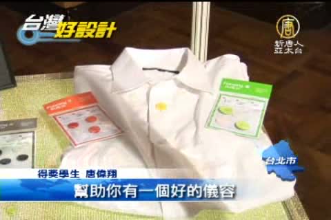 得獎學生 唐偉翔:「它用完帶回家可以把它的針折斷,然後變成一般的扣子再縫回去,所以它有一些價值在,它不只是即時,幫助你有一個好的儀容,不會少一個扣子,去參 加今天的這個頒獎典禮,回家還可以把它再縫回去。」