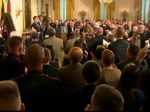 美國總統奧巴馬:“你承擔了你的責任,超凡脫俗,你信守著你所熱愛的海軍陸戰隊的最高傳統。因為你的榮耀,36名士兵至今能活在世上,因為你的勇氣,4位烈士榮歸故里。”