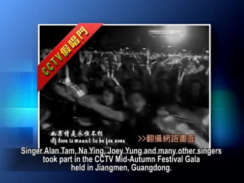 《央視》中秋晚會「假唱門」越演越烈。歌手譚詠麟日前與那英、容祖兒等多位明星,參加了《央視》在廣東江門舉行的中秋節文藝晚會,眼尖的觀眾發現歌手在臺上「對嘴」假唱,更有歌手對口型的時候連歌詞都唱錯。