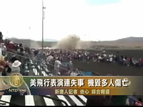 【新唐人2011年9月17日訊】當地時間星期五(9月17日)下午4點30分,在美國內華達州舉行的全美空中飛行錦標賽上,一架參賽飛機突然墜落看臺,造成多人死亡,目前已有三名死者身份得到確認,官方表示,具體死亡人數將在遲些時候公布。內華達州裏諾空中競賽協會負責人霍頓(MIKE HOUGHTON)表示,共有54人受傷,已全部送往醫院救治。