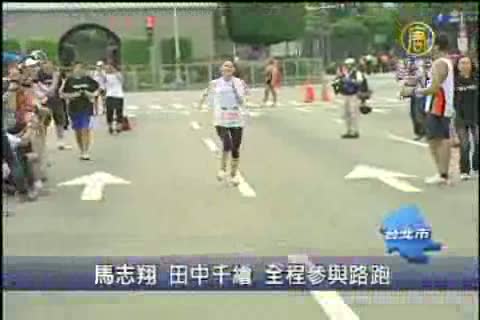 早上6點不到,總統府前面人山人海,都是參加路跑的民眾,藝人馬志翔跟田中千繪,豎起大拇指比出讚的手勢,摩拳擦掌蓄勢待發,主辦單位一聲令下,馬志翔跟田中千繪帶頭起跑,但好手如雲,2個人很快就淹沒在上萬名跑者裡面,但2個人還是很興奮,用力揮手往前跑。