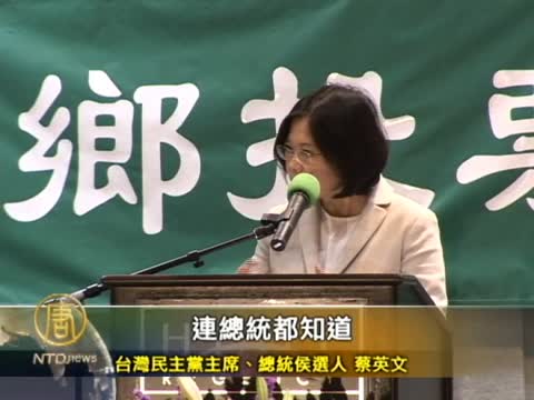 台灣民主黨主席、總統侯選人蔡英文:“檢驗討論嘛,我們共同在不同的立場,透過台灣共識的過程,我們共同去建造一個,大家都可以接受的,來處理對中國關係的基礎。”