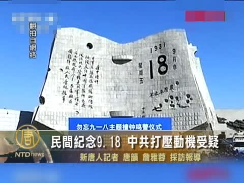【新唐人2011年9月19日訊】今年的9月18號是日本發動侵華的九一八事變80週年,18號當天,中共官方高調舉辦了一系列紀念儀式,並有28名副省級、副軍級以上官員出席;不過令民眾及海外媒體不解的是,中共官方卻打壓民間自發舉行的紀念活動。