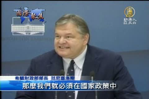 希臘財政部部長 范尼塞洛斯(Evangelos Venizelos):「如果我們想穩定局勢、想避免違約,如果希臘想繼續維持歐盟核心國的角色、如果不希望國家再被恐嚇和羞辱,因為沒有任何公民應該承受自己國家被羞辱,那麼我們就必須在國家政策中做出三項重要決策。首先,我們必須完全達到2011年和2012年的財政目標。」