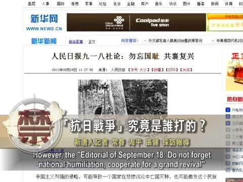【新唐人2011年9月20日訊】日軍侵華的「9.18事變」距離今天已經80年了,當年的「抗日戰爭」,究竟是誰打的?中共當局企圖定調「抗日戰爭」是由共產黨領導。學者認為,「愛國主義」和「民族主義」是中共六四以來,用來宣傳中共意識形態的基調,而謊言與暴力是維繫專制政權的兩個主要手段,中共不可能放棄。