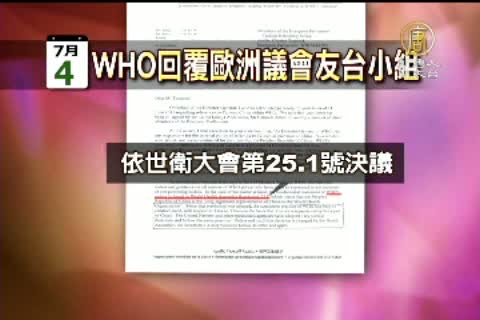 外交部趕緊滅火。不過早在今年5月16號,衛生署長邱文達在WHA大會就已經遞交抗議信,但晚了1個月寄抗議信的歐洲議會小組,7月4號就接到WHO的回函,但衛生署一直到9月9號依舊沒獲得回覆。