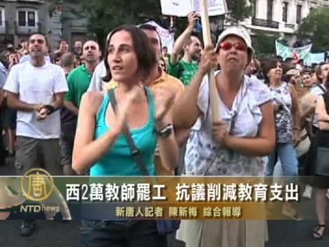 【新唐人2011年9月20日訊】西班牙首都馬德里附近地區2萬多名中學教師在星期二(9月19日)開始,展開為期兩天的罷工,抗議政府削減教育部門的開支,教師們擔憂教學品質將因此下滑,從而引發更多問題。