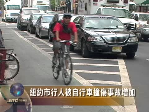 【新唐人2011年9月21日訊】根據紐約市立大學亨特學院(Hunter Collage)的最新調查顯示,在2007年到2010年間,有超過2200名行人被行駛的自行車撞倒受傷。事故多發區在東哈林區、下東城和華埠。