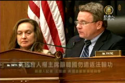 【新唐人亞太台2011年9月21日訊】來關注中國人權。針對南韓屈從中共壓力、試圖強行遣返申請難民被拒的中國籍法輪功學員,星期二,美國國會外交委員會下屬人權小組主席史密斯議員在國會聽證會上發表聲明,敦促南韓政府停止遣返法輪功學員回中國,並給予他們庇護身份。