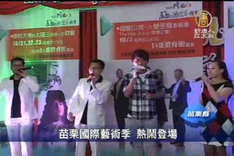 【新唐人亞太台2011年9月21日訊】今年台灣燈會,在苗栗締造了超過800萬的參觀人潮,讓人印象深刻。為了延續這一熱潮,今天(21號)苗栗縣長劉政鴻與活動代言人星光幫歌手張心傑,一起 宣布「苗栗國際藝術季活動」從10月份起正式展開。