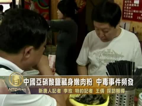 【新唐人2011年9月21日訊】中國近年發生多起亞硝酸鹽中毒事件,還鬧出人命,引起各界關注。很多餐館為提高效果,降低成本,使用添加亞硝酸鹽的嫩肉粉,大陸學者指出,亞硝酸鹽是致癌物,目前,市場上很多嫩肉粉添加亞硝酸鹽超標