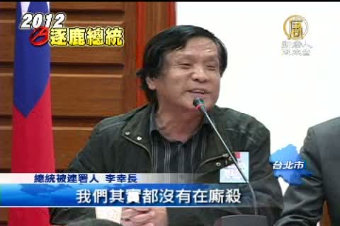 總統被連署人 李幸長:「假定有五組,裡面有一組聯署過了呢,我的建議是,其他四組,都要極力相挺,大家都不要計較,(鼓掌)大家都不要計較,好像我們現在在廝殺,我們其實都沒有在廝殺」