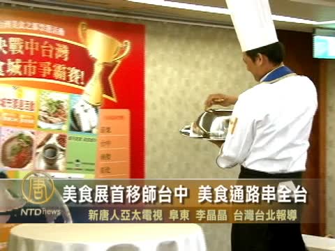 【新唐人2011年9月22日訊】台灣美食享譽國際,根據2008年世界經濟論壇(WEF)資料顯示,來臺觀光的旅客,有六成是為了品嚐台灣美食而來,第20屆台灣美食展,首度移師臺中,希望串連北中南 美食通路,將台灣美食行銷國際。