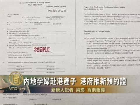 【新唐人2011年9月23日訊】近年來,大陸孕婦到香港生子熱潮高漲,對香港醫院造成巨大壓力。雖然香港政府早前宣佈今年不再接收大陸孕婦後,但明年又面臨新一波的生育潮。衛生署星期四宣佈,將發放新的分娩預約證明書,方便監管內地孕婦在香港分娩。