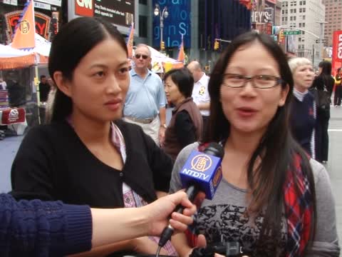 專程從新澤西趕到紐約時代廣場,觀看新唐人“全世界中國菜廚技大賽”的一對華人夫婦:“非常高興,今天我們到這裡來,因為,我們住在美國已經20幾年了,有些地道的中國菜我們也沒有吃過,這個比賽我覺得很有意義,弘揚我們中華文化,讓海外的朋友和外國人知道我們傳統文化的精髓。”