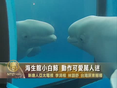 【新唐人2011年9月23日訊】台灣屏東海生館超人氣明星小白鯨,活潑可愛的模樣和喜歡與人互動的天性,一直是遊客的超級寵兒,現在就跟著我們的鏡頭,帶您到海生館一睹小白鯨萬人迷的可愛模樣。