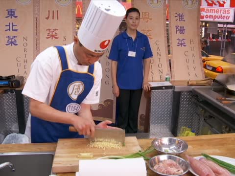 今天的確是一個獨特的體驗,因為你可以在時代廣場,在大屏幕上,或者是非常臨近的看廚師們親自演示中國傳統菜的不同技法,然後立刻在趁熱的時候品嚐他們的作品。