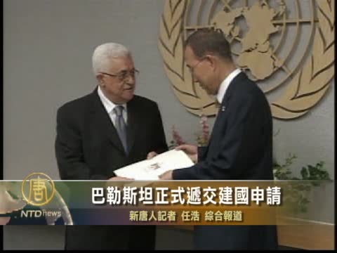 【新唐人2011年9月24日訊】星期五(9月23號),巴勒斯坦領袖阿巴斯,正式向聯合國秘書長潘基文遞交申請信,希望巴勒斯坦能成為聯合國成員國。