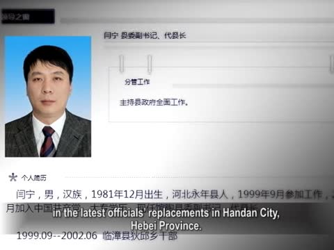 迫於壓力,館陶縣近期在政府網站上公布了閆寧的簡歷。簡歷顯示,閆寧1981年12月出生,河北永年縣人,17歲參加工作,大專學歷。從2005到2007年,不到3年的時間裏,閆寧多次更換工作單位,獲得4次提拔。