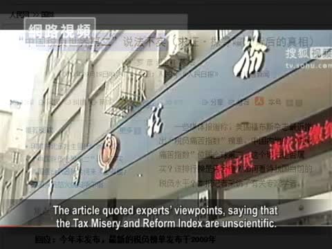 《人民日報》9月19號發表題為「『中國稅負世界第二』說法不實」的文章,引述所謂專家的觀點認為,「稅負痛苦指數」科學性較差,在反映稅負高低問題上存在缺陷,以國際標準「宏觀稅負」衡量,中國稅負並不高。
