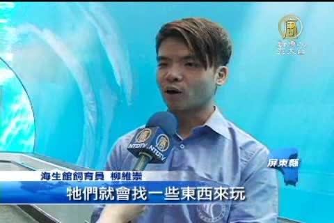 海生館飼育員 柳維崇:「小白鯨牠們是非常的聰明,智商大概是7到8歲小孩智商的程度,所以牠們非常的愛玩,就像小朋友一樣,所以牠們有時候在池子裡面就會找一些東西來玩。」
