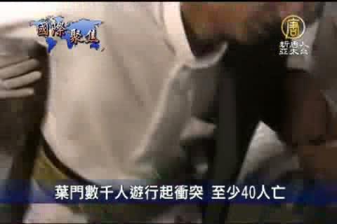 【新唐人亞太台2011年9月25日訊】星期六(9月24號),數千名葉門人走上首都薩那的街頭,要求總統薩利赫下臺。遊行遭到政府軍暴力干預,並發生衝突,造成至少40人死亡。