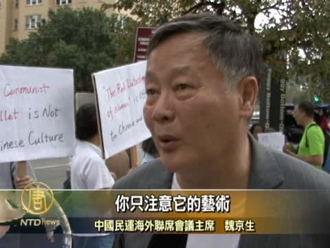 【新唐人2011年9月26日訊】日前,二十六個海外民運組織和民間團體發表公開信,揭露中共在美國首都華盛頓的甘迺迪藝術中心演出芭蕾舞劇《紅色娘子軍》,是把中共的仇恨與暴力宣傳輸出到海外,進行文化滲透與撒毒。24日,他們還舉辦集會,呼籲東西方民眾共同抵制這一演出。