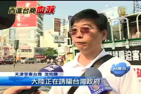 【新唐人亞太台2011年9月26日訊】新聞頭條,帶您聚焦,受害台商沈柏勝,月初才在台北舉行受害中國台商大遊行,率領多位台商及家屬首次走上街頭,引起關注。一個月不到,主辦單位今天再度在台南市舉行抗議中共迫害台商大遊行,而且還在現場焚燒中共五星旗。面對下個月即將登場的兩岸投保協議,台商希望台灣政府,不要受騙上當。