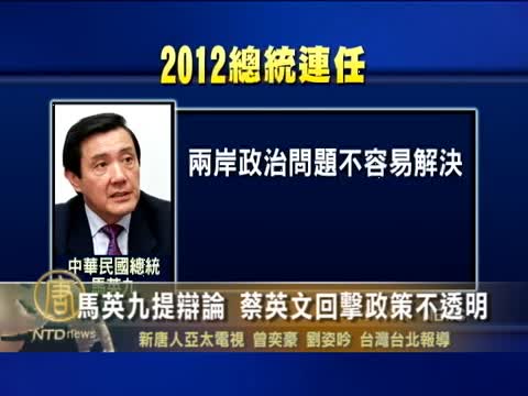 【新唐人2011年9月26日訊】馬英九總統日前接受美國學者書面提問時,表態希望民進黨能夠多與國民黨進行政策辯論,以凝聚台灣共識。對此民進黨主席蔡英文今天(26日)回應說,馬英九執政時許多政策並不透明,強調領導者要有誠信才可以凝聚共識。