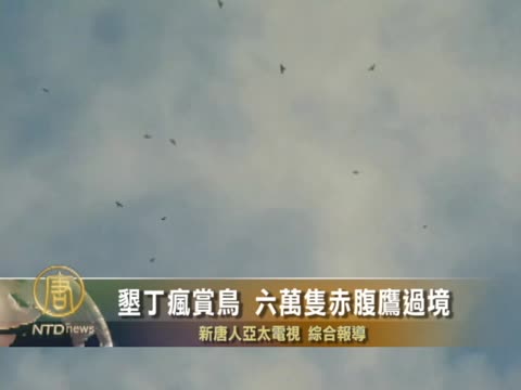 【新唐人2011年9月26日訊】南台灣的恆春半島進入候鳥過境期,從9月份開始,成千上萬隻的赤腹鷹出現在墾丁的天空,目前已經纍積有6萬隻遷徙過境,帶您去看看。
