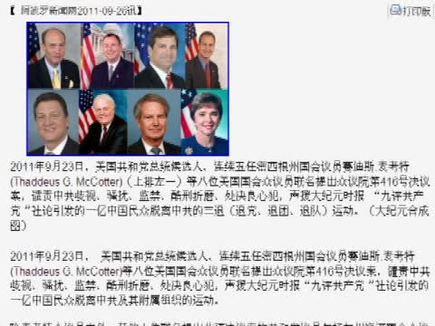 【新唐人2011年9月27日訊】9月23日,美國國會以賽迪斯.麥考特(Thaddeus G. McCotter)為首的八位眾議員共同提出一項決議案,譴責中共歧視、騷擾、監禁、酷刑折磨及處決良心犯,並聲援一億中國民眾脫離中共及其附屬組織的運動。