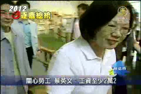 【新唐人亞太台2011年9月27日訊】好,回到台灣,關心台灣的就業問題。目前台灣的基本工資不到2萬元。民進黨主席蔡英文今天南下全台灣勞工人數最多的高雄,提到基本工資,至少應該在2萬2千元以上,同時也要提升時薪到112元,保障打工族的權益。