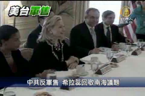 【新唐人亞太台2011年9月27日訊】在美方宣佈為台灣的F-16戰機提供升級後,中共一如往常嚴詞威脅恫嚇,對此美國國務卿希拉蕊表示,美國樂見兩岸保持更多的互動、互信與建立自信,希拉蕊也強調,南海屬於國際海域,自由出入與探測,攸關區域和平穩定。