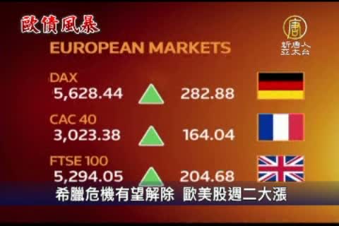 【新唐人亞太台2011年9月28日訊】來關心歐債風暴危機。星期二(27號),希臘總理帕潘德里歐與德國總理梅克爾舉行了會談,就希臘的經濟情況,特別是雅典提出的削減赤字改革進行討論。此一消息讓投資者對市場恢復信心,使得歐美股市星期二大漲。