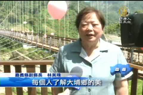 嘉義縣副縣長 林美珠:「大埔鄉是嘉義非常美的一個地方,天然資源非常豐富,地理也是很美,但是很不幸在88風災時,將本鄉3條的吊橋,在一夜間都毀掉,為了要讓大埔鄉的觀光能夠重建,讓全臺灣的人,每個人了解大埔鄉的美,了解大埔鄉的農產品是如何的好,所以我希望能趕快來完成這項工作。」