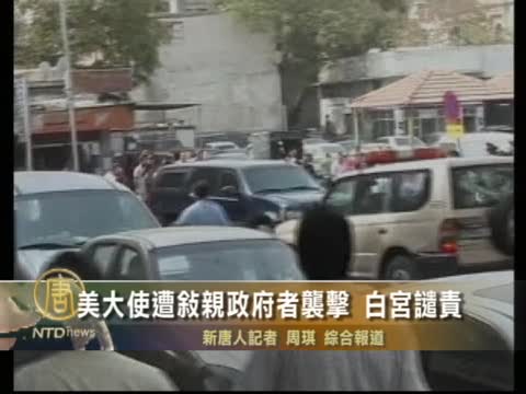 【新唐人2011年9月30日訊】美國駐敘利亞大使羅伯特·福特29日在抵達大馬士革市與敘反對派接觸時,其車隊遭到敘利亞總統阿薩德支持者的襲擊。據稱阿薩德支持者還試圖大鬧會場。白宮當天對此表示強烈譴責。