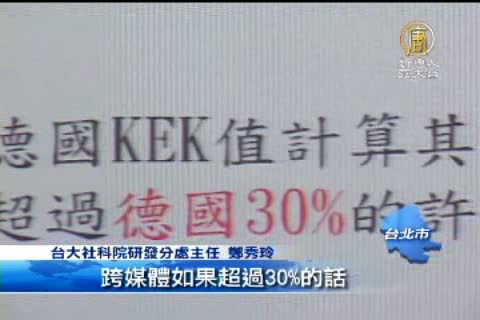 台大社科院研發分處主任 鄭秀玲:「旺中公司持有的資源去算,它的整個閱聽市場的集中度,我們算出來,高達140%,是遠遠超過德國所訂的,跨媒體如果超過30%的話,就不可以了,所以它可以控制媒體內容,還有節目頻道的上架權利」