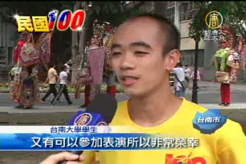 【新唐人亞太台2011年9月30日訊】今年建國百年國慶表演活動,台南大學一共動員260多位學生,將以舞龍、宋江陣等展現台灣在地的民俗文化特色,展現給國內外的觀眾,其中罕見的百米舞龍今天首度亮相,氣勢十足。帶您先睹為快。