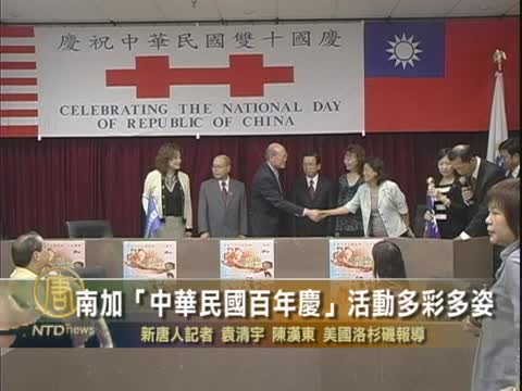 【新唐人2011年9月30日訊】光輝十月即將來臨,為慶祝中華民國一百年雙十國慶,大洛杉磯地區僑界慶祝活動多彩多姿高潮迭起。29日在洛杉磯華僑文教服務中心除舉行組團返國參加十月慶典活動授旗儀式外,各僑團代表數十人就南加一年一度的「中華民國雙十國慶」系列慶祝的24項活動加以說明。請看美國洛杉磯報導。