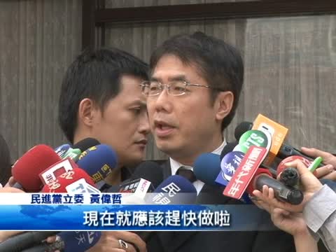 民進黨立委黃偉哲:「馬總統現在還在執政,現在就應該趕快做啦,我們想要問他周休二日,三年來以來他在做甚麼,黃金十年要在他第二任才要開始嗎,是替替下下任的總統先開支票嗎,所以我覺得這個部分真是不知所云」