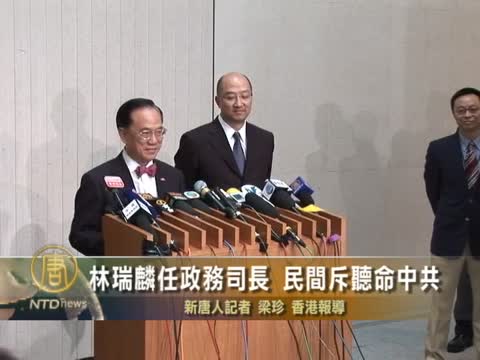 【新唐人2011年10月1日訊】香港政府星期五宣佈多項高官新任命。其中已辭職準備參選特首的唐英年政務司司長一職,由政制及內地事務局局長林瑞麟接任。有學者批評,林瑞麟民望低落,聽命中共,質疑其管制能力。