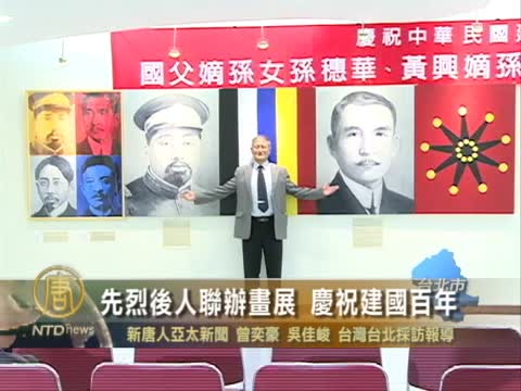 【新唐人2011年10月1日訊】慶祝中華民國建國100年,僑委會與國父紀念館邀請國父孫女孫穗華與開國元老黃興的嫡孫黃紹強舉辦聯合畫展,立法院長王金平、中華文化總會會長劉兆玄等人都出席開幕典禮,為畫展剪綵致賀。