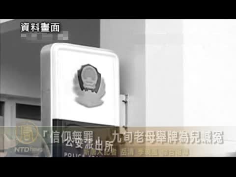「信仰無罪」九旬老母舉牌為兒喊冤
