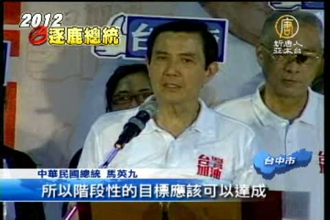【新唐人亞太台2011年10月1日訊】來看到,國民黨的台灣加油讚中部競選辦公室,選擇在今天上午成立,總統馬英九特地來參加,他在會中也主動提到,2008年他競選總統時候所說的黃金十年633政見,到底有沒有實現。