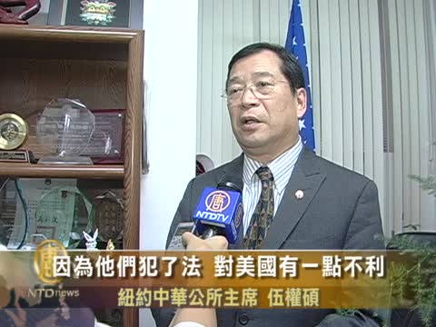 紐約中華公所主席伍權碩:「跟普通的非法移民不一樣,因為他們犯了法對美國有一點不利,因為是犯人,找他們、抓他們,送回去,我相信這個是很好的,因為他們是非法的(移民),又犯罪,這樣對我們不好,我都認同他們這樣做。」