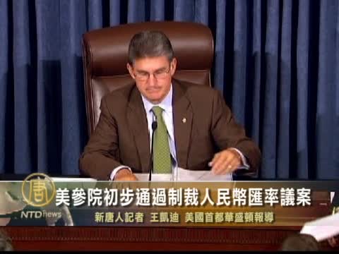 【新唐人2011年10月4日訊】美國國會參議院10月3號以79票贊成、19票反對的投票結果通過了一項針對中國人民幣匯率的制裁議案。這份議案將通過增加關稅的方式打擊中國故意壓低人民幣幣值的行為,以減少貿易逆差,增加國內就業機會。