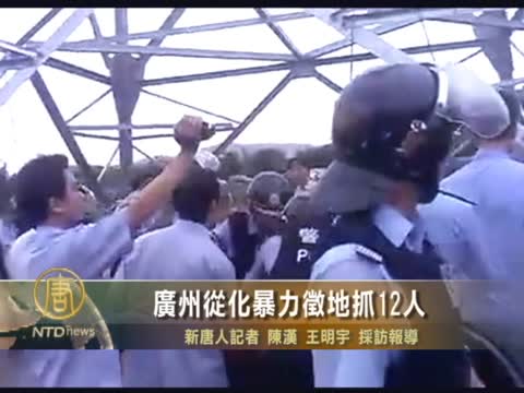 【新唐人2011年10月5日訊】中國廣州近日傳出暴力強徵農地事件,官方出動上百警力,一部分還頭戴鋼盔手持盾牌警棍全副武裝,手無寸鐵的太平鎮水南村民為了護地,肉身與警搏鬥,多人遭打傷,12被抓。