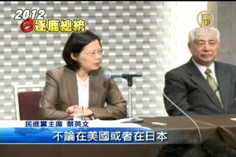 民進黨主席 蔡英文:「從我們這兩次的出訪,我得到的感覺是,不論在美國或者在日本,他們都期待兩岸關係的和平穩定的發展,他們也希望這種對話,和平的對話其實非常重要,我想在這幾次的訪問當中,我們也看得出來日本也好美國也好,相關人士對整個情勢的發展,其實都有相當程度的掌握。」